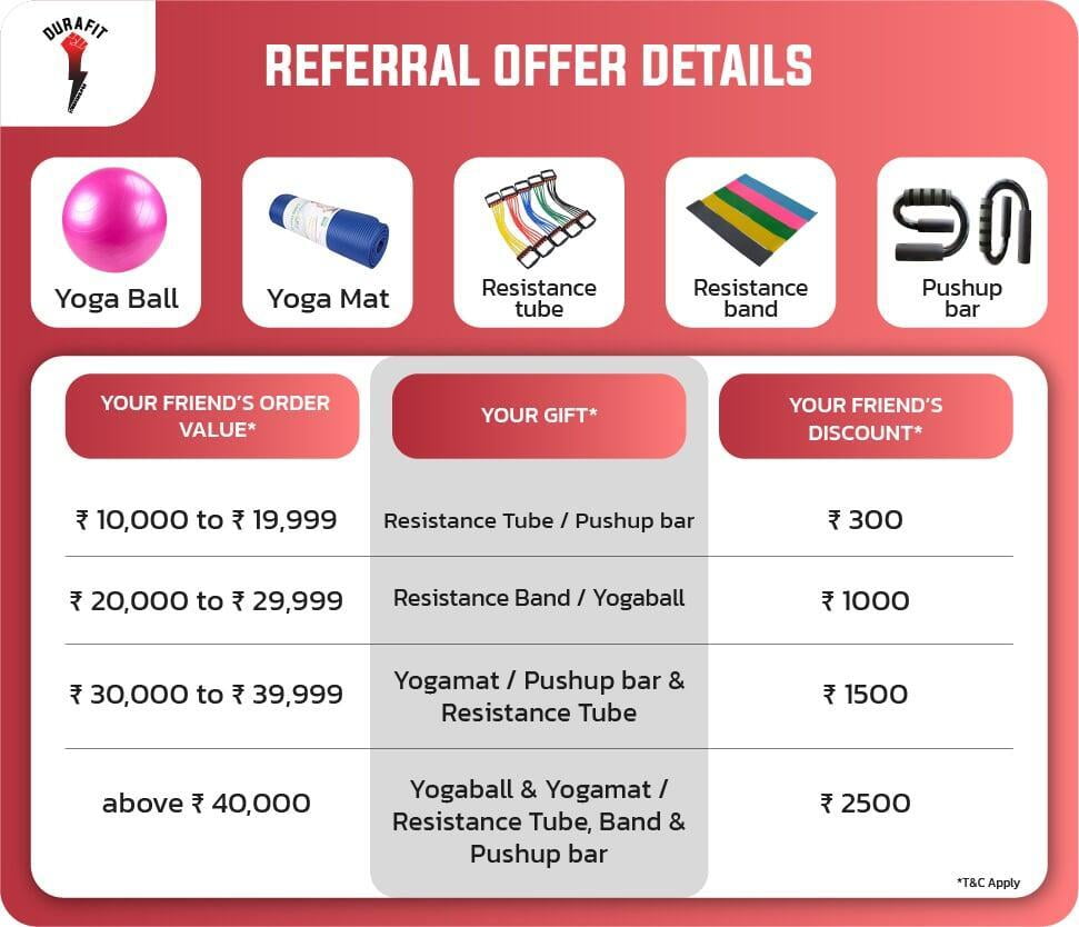 Refer Durafit to new customers. You will get a special gift on a successful purchase, and your referred person will get a special discount on his purchase.